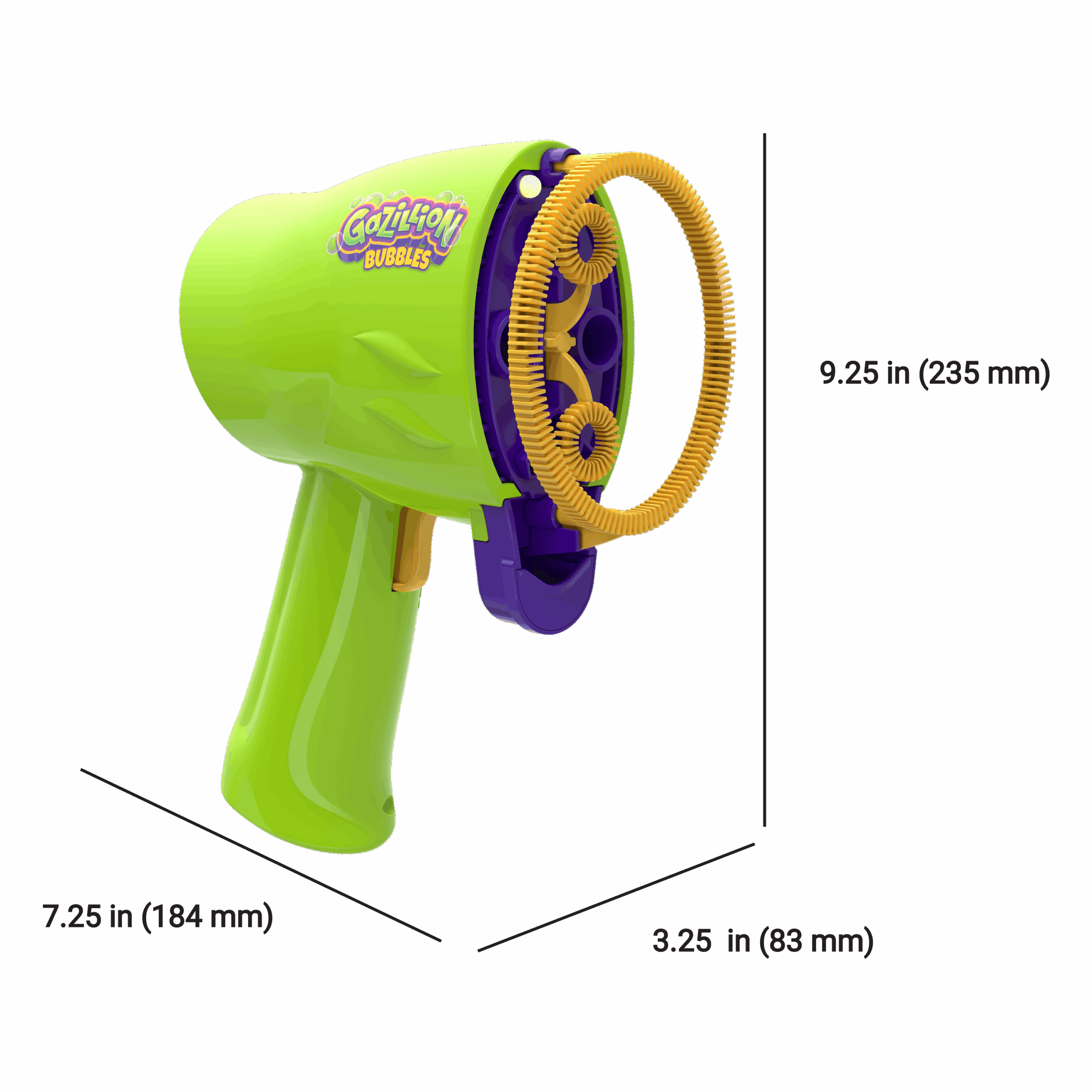 Step into a world of wonder with the Gazillion Bubbles® Bubble in Bubble Magic Blower. With a single button, kids make bubbles inside bubbles or switch to big bubble mode for variety that keeps them captivated in screen-free outdoor fun. The pour-back spout recovers unused solution; less waste and more play. Includes 4 oz non-toxic solution; just add 3 AAA batteries (not included). Perfect for indoor and outdoor fun, ages 3+.