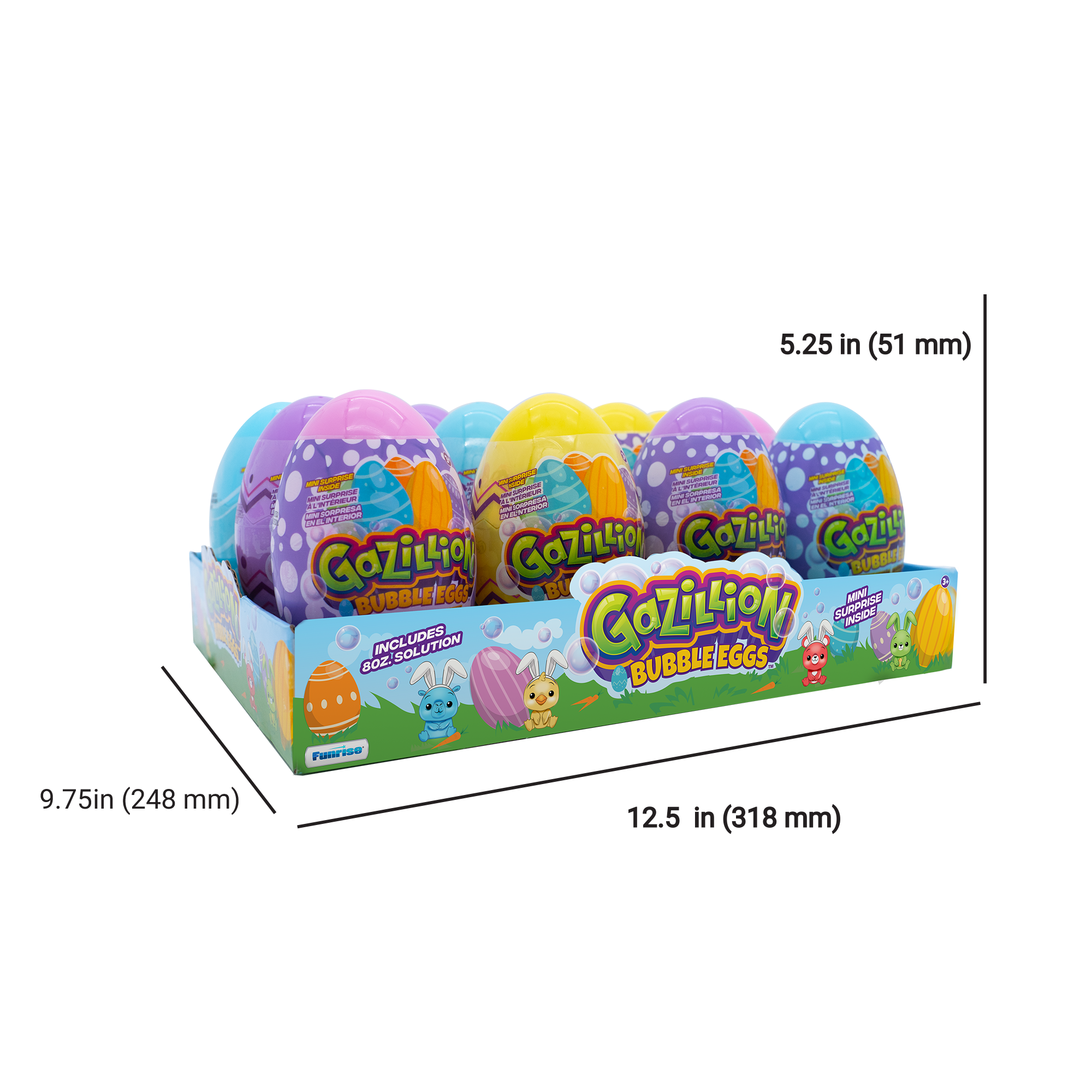 Hop into bubbly fun with 12 Gazillion Bubbles® Bunny Eggs-the easy way to win Easter and everyday surprises. Each colorful egg holds oz of non-toxic premium Gazillion Bubble Solution, a bubble wand, and a mystery bunny mini surprise for instant smiles. Just crack open, dip, and blow. Great for Easter baskets, egg hunts, party favors, or anytime rewards, and available in 4 vibrant colors kids ages 3 and up will want to collect.